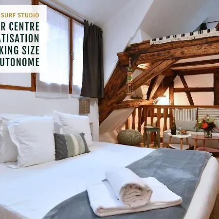 Surf Studio Lit King Size Maison Alsacienne dairesinde ufak mutfağın yanı sıra kahve/çay makinesi, oturma alanı, televizyon içeren odalar bulunmaktadır. Colmar şehrinin hareketli merkezi, Colmar Centre Ville semtinde yer alan daireye 1 km uzaklıktadır.